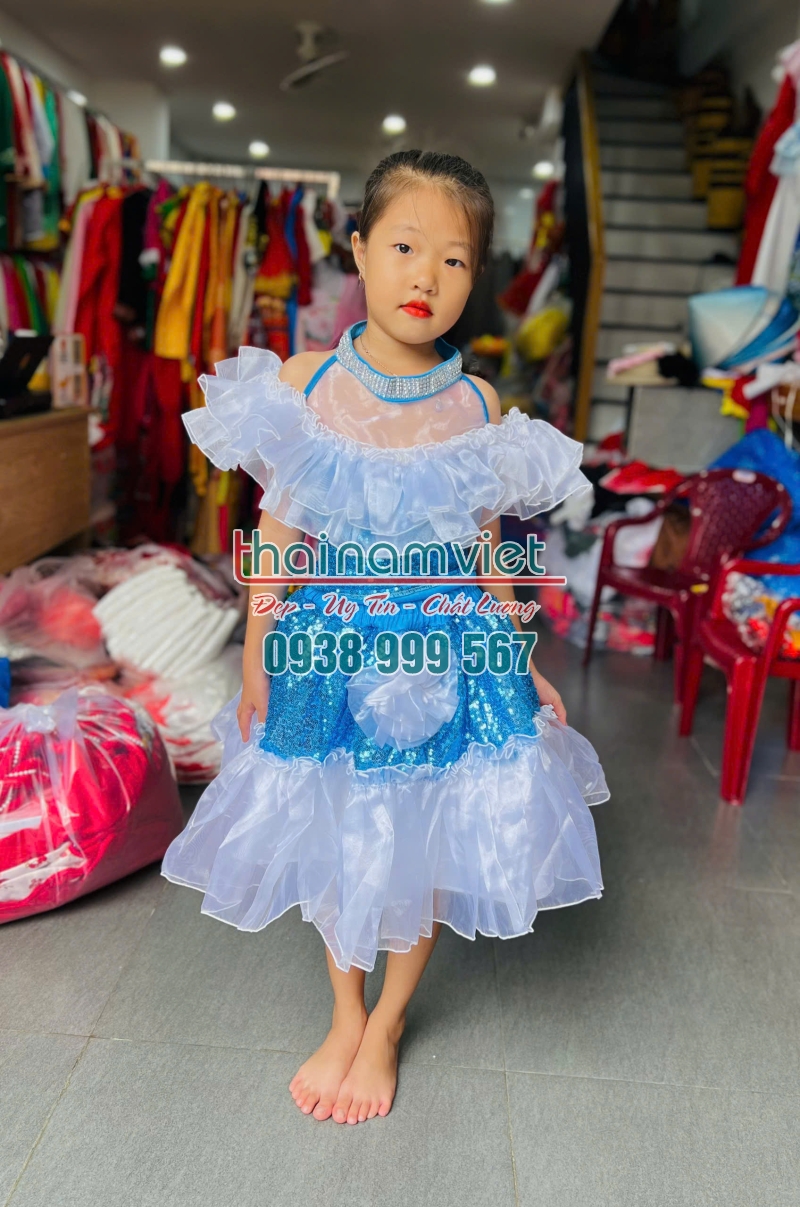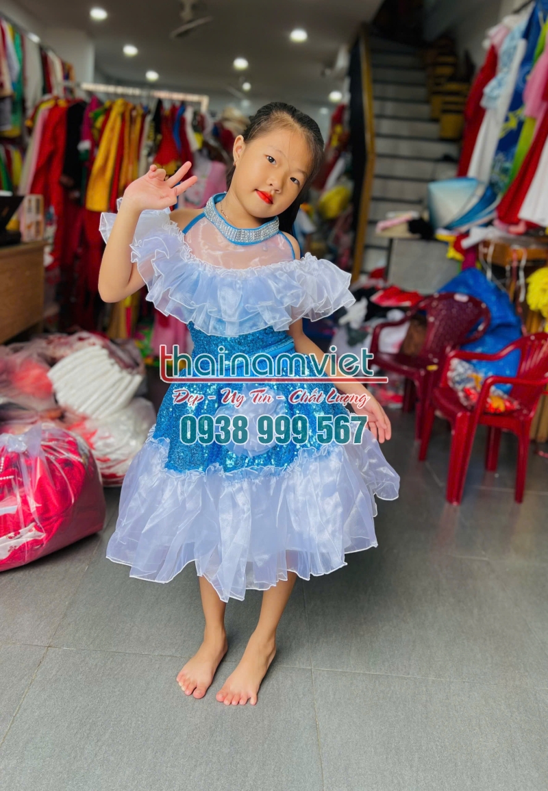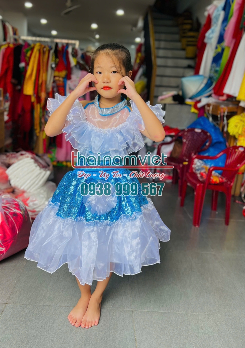 Váy múa trẻ em xanh trắng rời